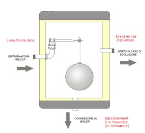 - Le thermosiphon : L’eau chaude prenant plus de place que l’eau froide, quand l’eau se réchauffe elle “pousse” l’eau à monter.