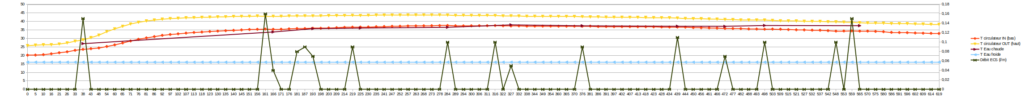L’instrumentation n’est pas d’une précision folle, les conditions sont des conditions en situation (et non en laboratoire). Les sondes de températures sont plutôt précises ; le débitmètre, lui, un peu moins :