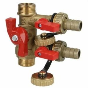 Un contributeur (François) m’a expliqué comment il remplissait les circuits. Il utilise un remplisseur 3 vannes en photo ci-après. Il faut remplir d’un côté en laissant l’autre ouvert et fermer la vanne du milieu, ça pousse l’air vers la sortie. Dès que l’eau sort, c’est bon, il faut fermer les 2 vannes et rouvrir la vanne du milieu.