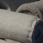 Pour découper le cercle nous avons investi dans 2 bâches (10x2m) qui serviront plus tard pour couvrir le bois. Elle nous ont permis d’étendre la moitié de la toiture et de tracer le cercle à l’aide d’une grande ficelle de la taille du rayon.