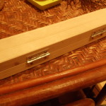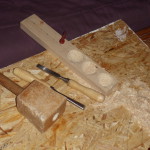 Le « plateau » : je me suis très inspiré du site african-concept, qui explique la méthode traditionnelle de fabrication. J’ai récupéré deux petites chutes de bois que j’ai creusé au ciseau à bois puis poncé. J’ai acheté « 3 francs 6 sous » un fermoirs et une charnière pour faire plus propre.