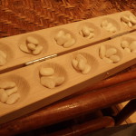 Selon Wikipiedia : L’awélé ou awalé est un jeu de société combinatoire abstrait créé en Afrique. C’est le plus répandu des jeux de la famille mancala, ensemble de jeux africains de type « compter et capturer » dans lesquels on distribue des cailloux, graines ou coquillages dans des coupelles ou des trous, parfois creusés à même le sol.