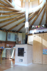 Je suis hyper content d’avoir ce petit poêle de masse. Il est peut être un chouilla sur-dimensionné (je dis ça car même quand il fait des températures négatives, on ne fait pas plus d’un feu par jour), mais cette chaleur que ça produit (chaleur du poêle douce + chaleur des murs) est tellement agréable.