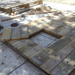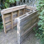 - Les 2 palettes de côté & la palette du fond n’ont pas subit de démontage (travail en moins), elles ont par contre été découpées en longueur. Ces palettes ont été choisies car l’intervalle entre les planches était suffisamment grand pour combler avec d’autres planches de palette ;