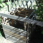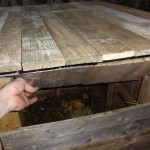 A noter que 2 rangs de planches ont été démontés sur chacune des palettes debout afin d’enfouir les traverses dans le sol. Sauf pour la porte de devant qui devra pouvoir se retirer pour qu’à l’occasion on puisse pelleter facilement le composte.