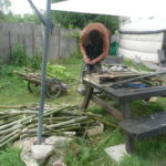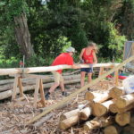 La charpente réciproque (aussi appelée toit mandala) est une charpente auto-portée. Pour notre paillourte nous l’avons faite en châtaigner, c’est un bois qui pousse bien prêt de chez nous et qui pousse (plutôt) droit.