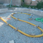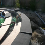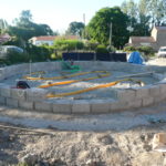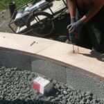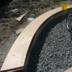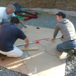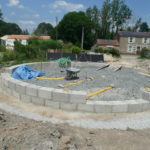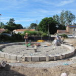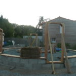 - Vérifier la position de la poutre avec un fil à plomb de façon à ce que son point le plus proche du centre soit bien tangent au cercle central dessiné au sol.