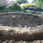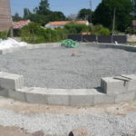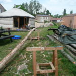 - Placer un poteau à la vertical sur lequel va reposer la première perche (la perche est tangente au cercle central, le poteau est placé légèrement à l’extérieur de celui-ci);