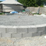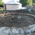 - Tracer au sol le cercle central, y marquer les emplacements des perches principales et les reporter/projeter sur le mur avec un cordeau ;