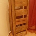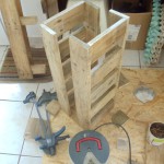 Au début j’étais partie pour assembler les éléments à la colle à bois mais ça n’a pas très bien marché. J’ai finalement utilisé les pointes récupérées des palettes précédemment démonté.