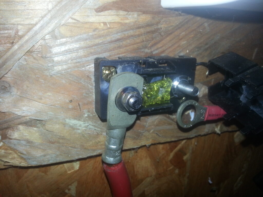 La bêtise c’est de n’avoir pas utilisé des connexions adéquates (diamètre et donc surface de contact) sur un porte fusible. En gros, le porte fusible était trop petit par rapport au diamètre des cosses à presser.