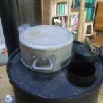 - Le chauffage se fait chez nous au bois (moins de 2 stères suffisent à chauffer une yourte de 40m² pour l’hiver) et c’est le même poêle à bois qui chauffe notre eau l’hiver.