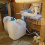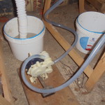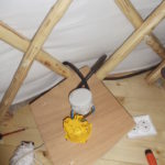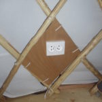 Pour l’isolant il s’agit de liège (40mm) car j’avais des chutes de la construction du plancher de la yourte. J’ai envisagé de le faire en récupérant des barquettes de poissonnier en polystyrène à la fin d’un marché (il s’en jette des quantités folles). Le polystyrène est un très bon isolant même s’il n’est vraiment pas écologique mais dans le cas présent, le récupérer avant qu’il soit jeté, c’est éviter qu’il soit brûlé…