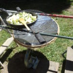 Après mon gâteau j’ai tenté une tarte et celle-ci n’a pas aussi bien cuite au fond. J’ai donc ajouter une plaque type plancha que j’avais sous la main. Elle a l’avantage d’être noire et va diffuser la chaleur sous le plat. Il est possible d’utiliser n’importe quel matériau plutôt lourd et sombre (tôle, fonte). L’avantage c’est :